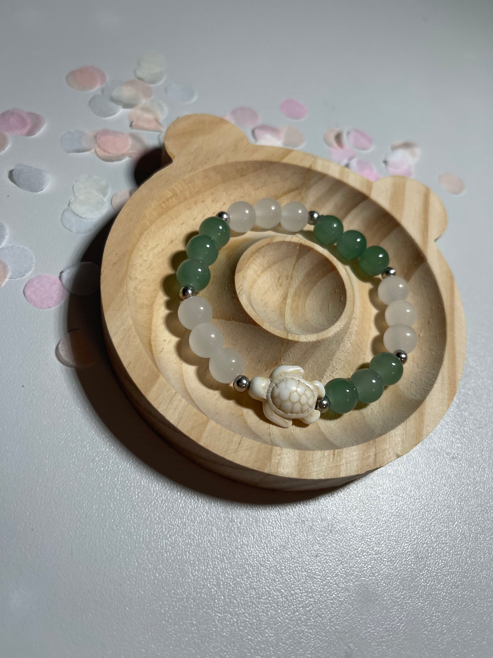 Ein wunderschönes Glasperlen Armband wartet auf dich. In den vielen schönen Farben strahlt es wir der Himmel. Die Schuldkröte ist dein persönlicher Begleiter.