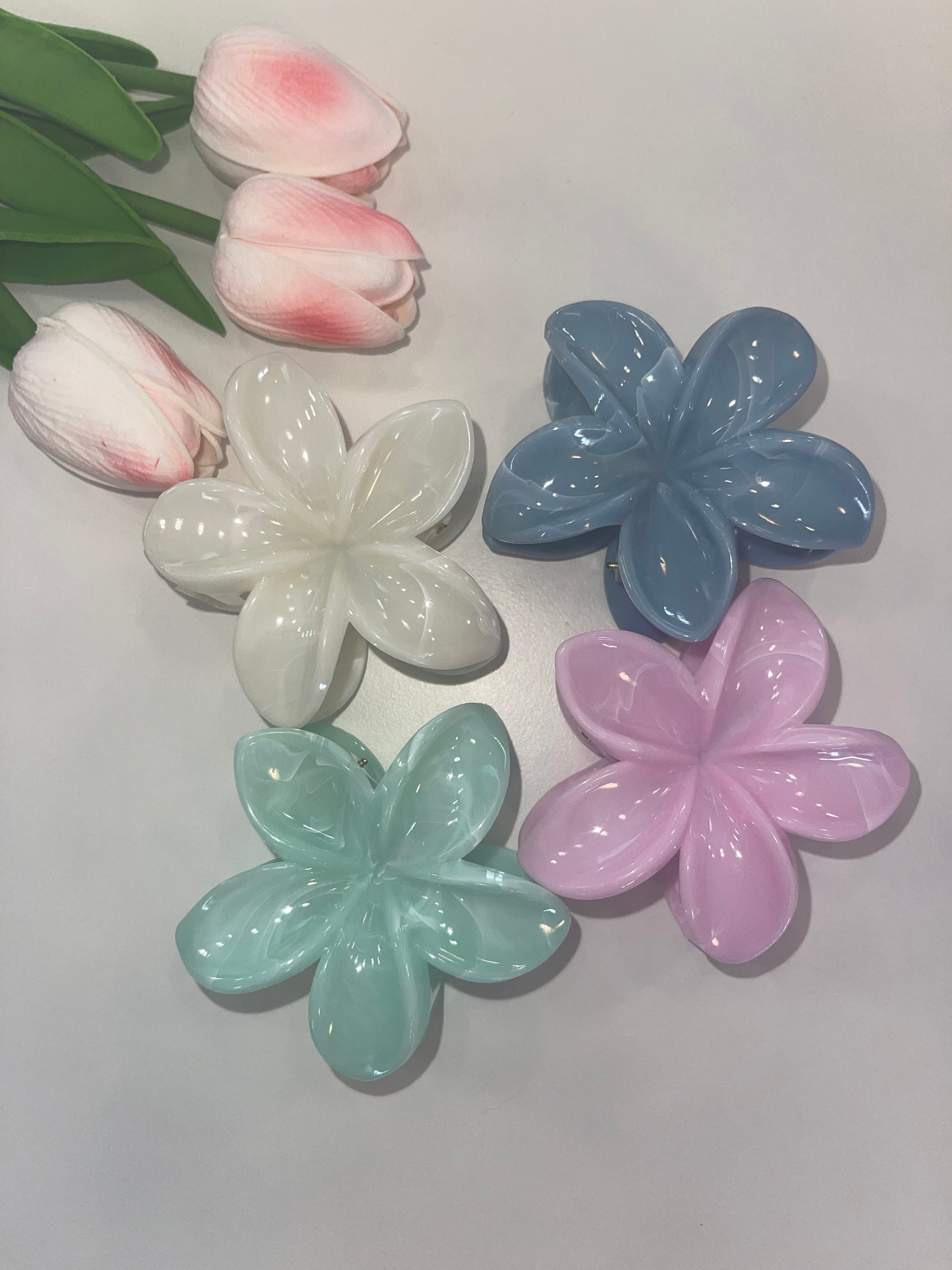 Ob in Cremeweiß, Himmelblau, Mintgrün oder Lavendel – die glänzende Oberfläche und die blumige Form verleihen deinem Look eine frische, feminine Note. Perfekt für romantische Frisuren, sommerliche Outfits oder einfach als süßes Detail im Alltag.