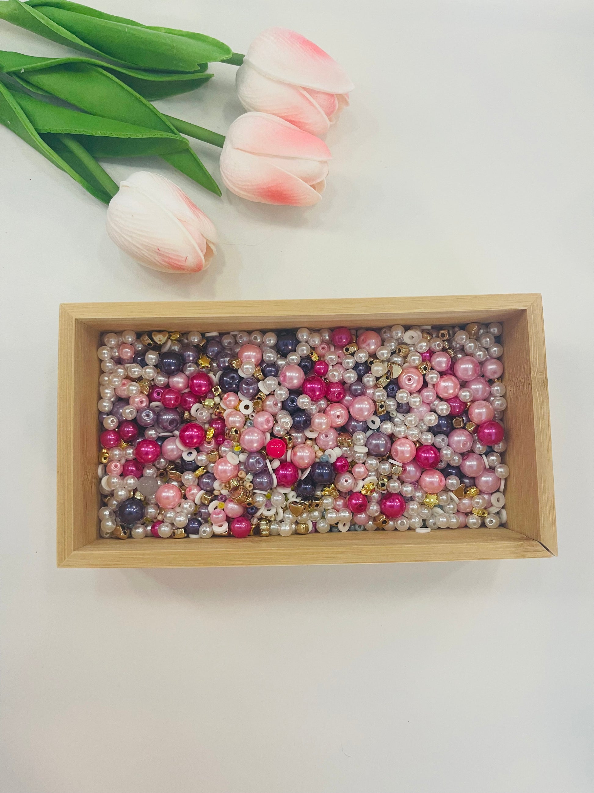 Dieser liebevoll zusammengestellte Mix aus Perlen in Weiß, Rosa, Gold und Violett verleiht deinen DIY-Kreationen eine besonders edle Note. Ideal für Armbänder, Ketten oder Deko – perfekt für alle, die Glitzer und Glamour lieben.