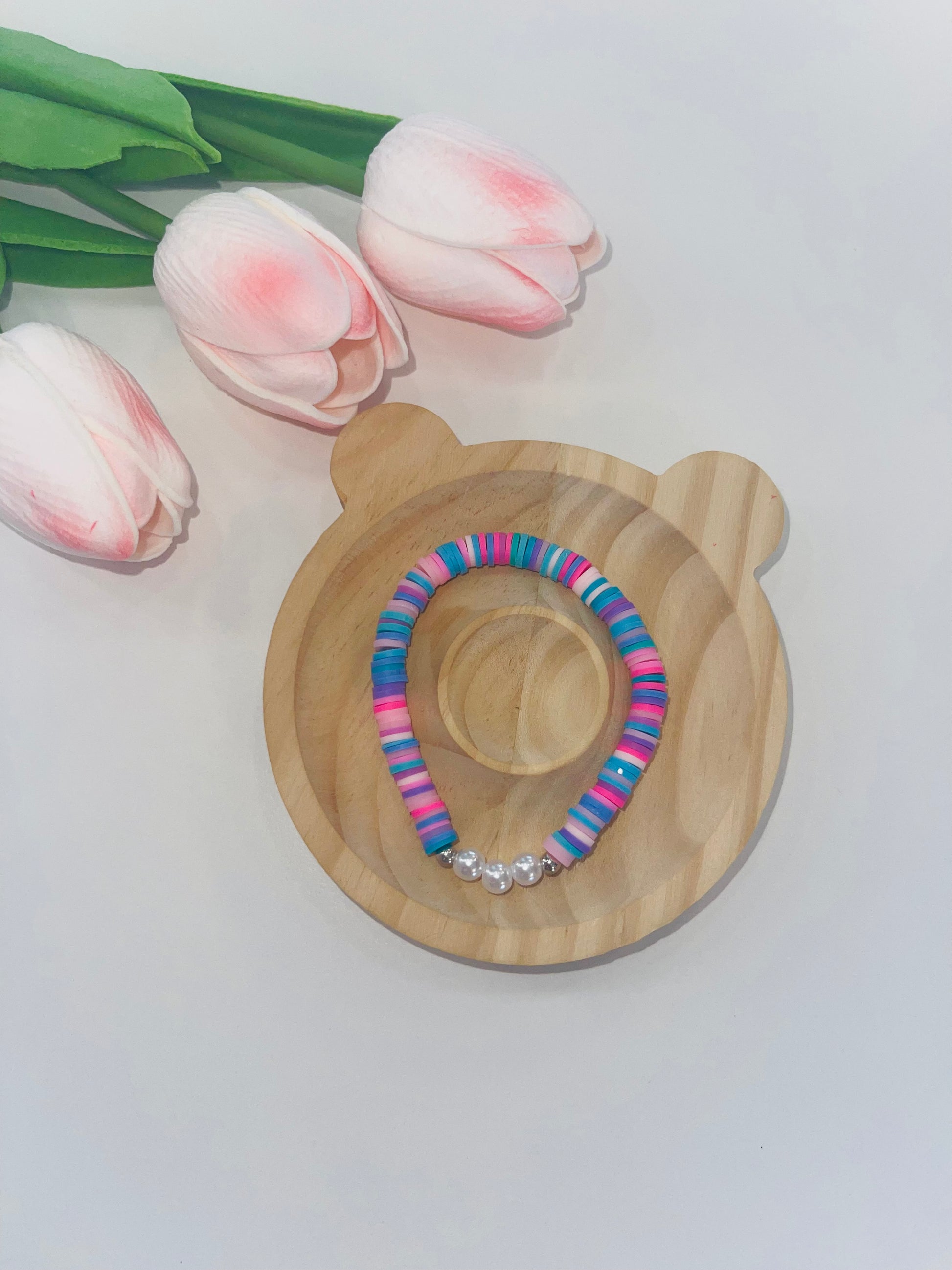Dieses farbenfrohe Armband bringt sofort gute Stimmung! Die bunten Clay Beads in Pink-, Blau- und Violetttönen sorgen für einen verspielten Look und werden durch drei glänzende, silberne Kugelperlen stilvoll ergänzt. Das elastische Band sorgt für ein bequemes Tragegefühl – ideal für Kinder, Jugendliche oder alle, die ein bisschen Farbe in ihren Alltag bringen möchten. Perfekt als Sommer-Accessoire oder kleines Geschenk mit Herz.